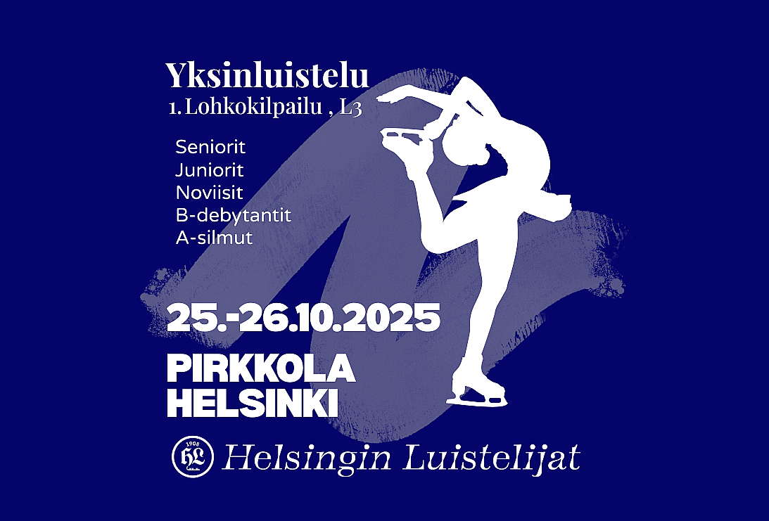 Helsingin Luistelijat järjestää seniorien, juniorien, noviisien, B-debytanttien ja A-silmujen 1. lohkokilpailun (L3) 25.-26.10.2025. Kilpailuareenana toimii Pirkkolan jäähalli, Plotinrinne 8, 00630 Helsinki.